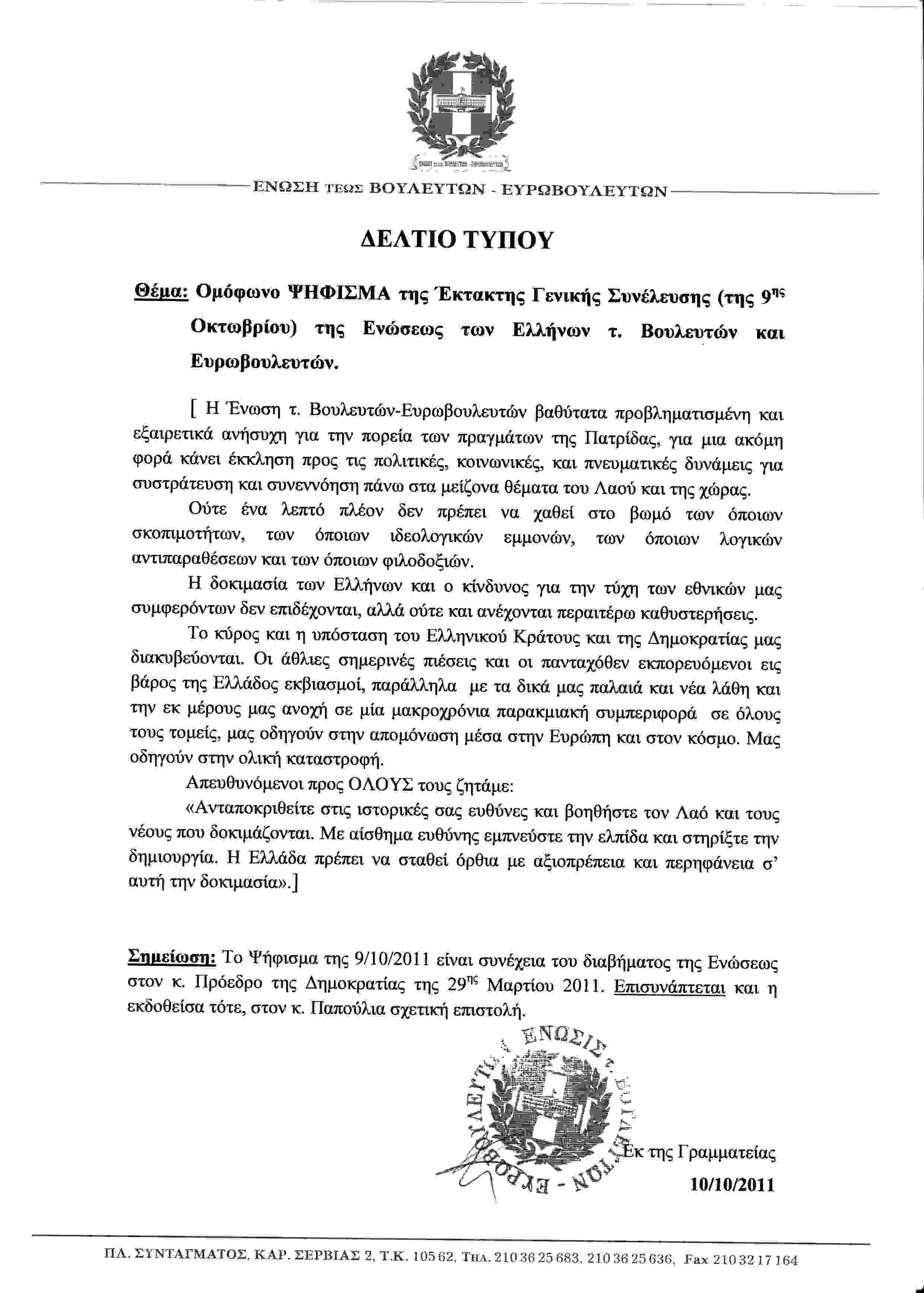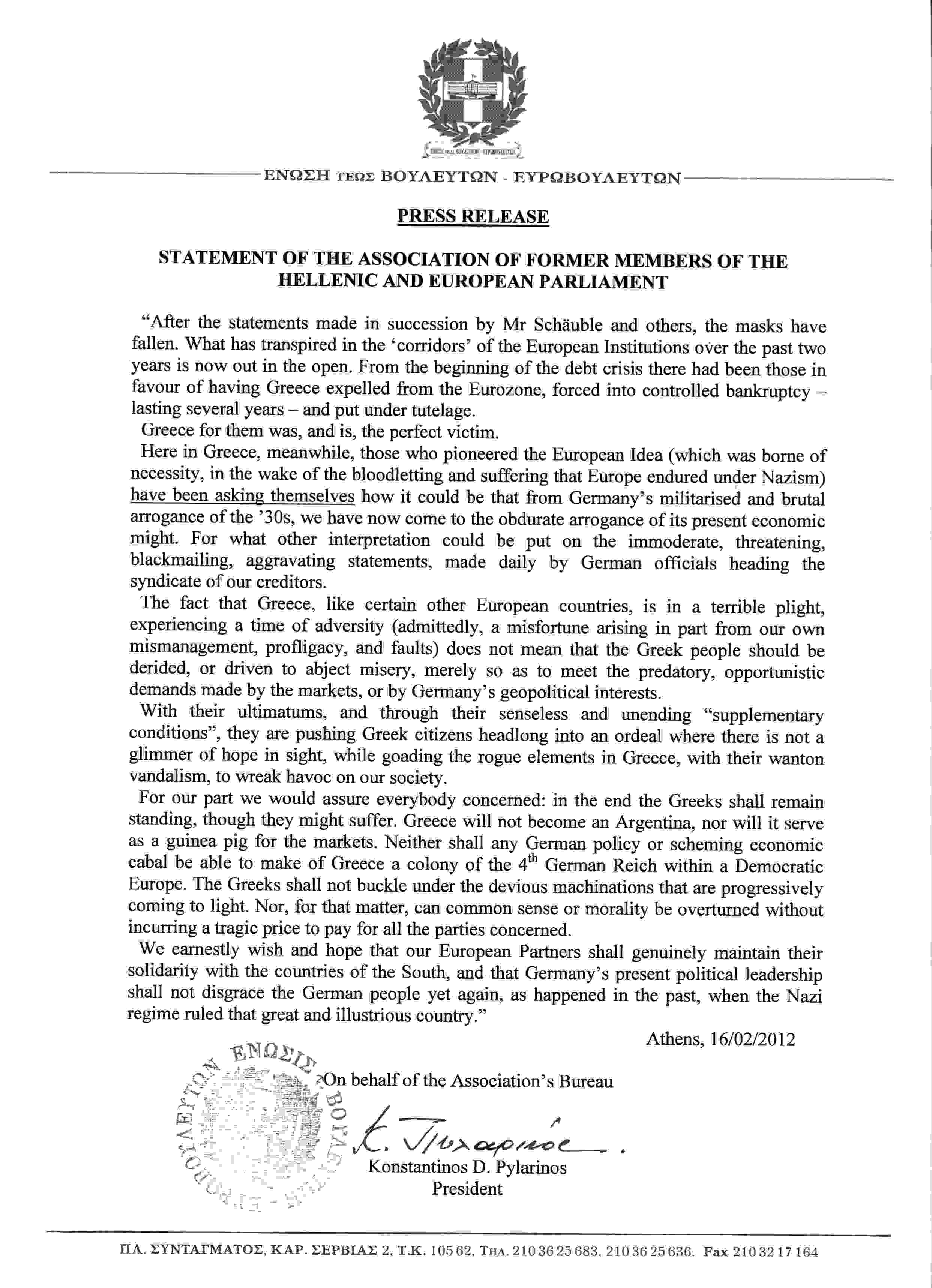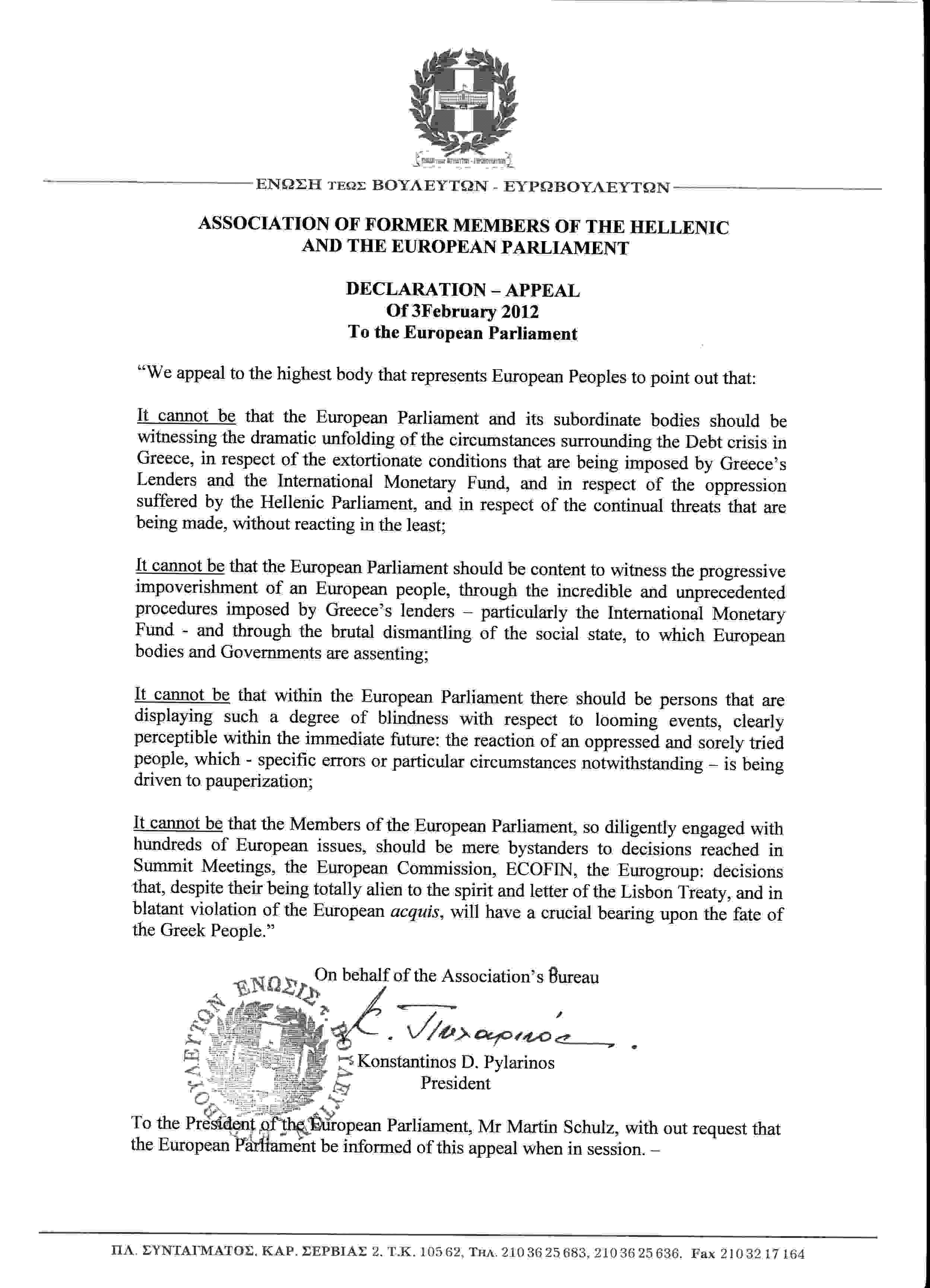 ASSOCIATION OF GREEK FORMER MEMBERS OF THE HELLENIC AND EUROPEAN PARLIAMENT |