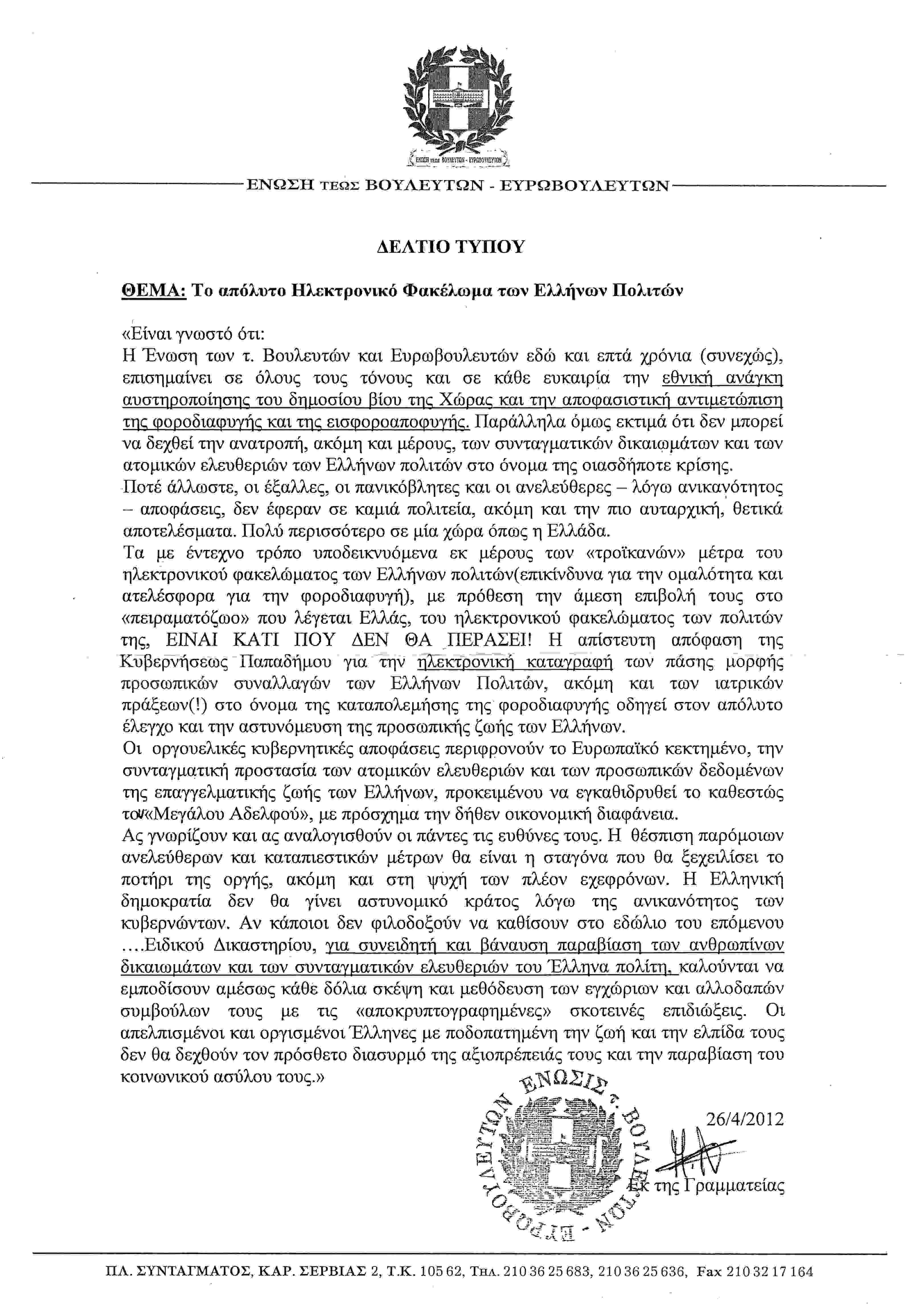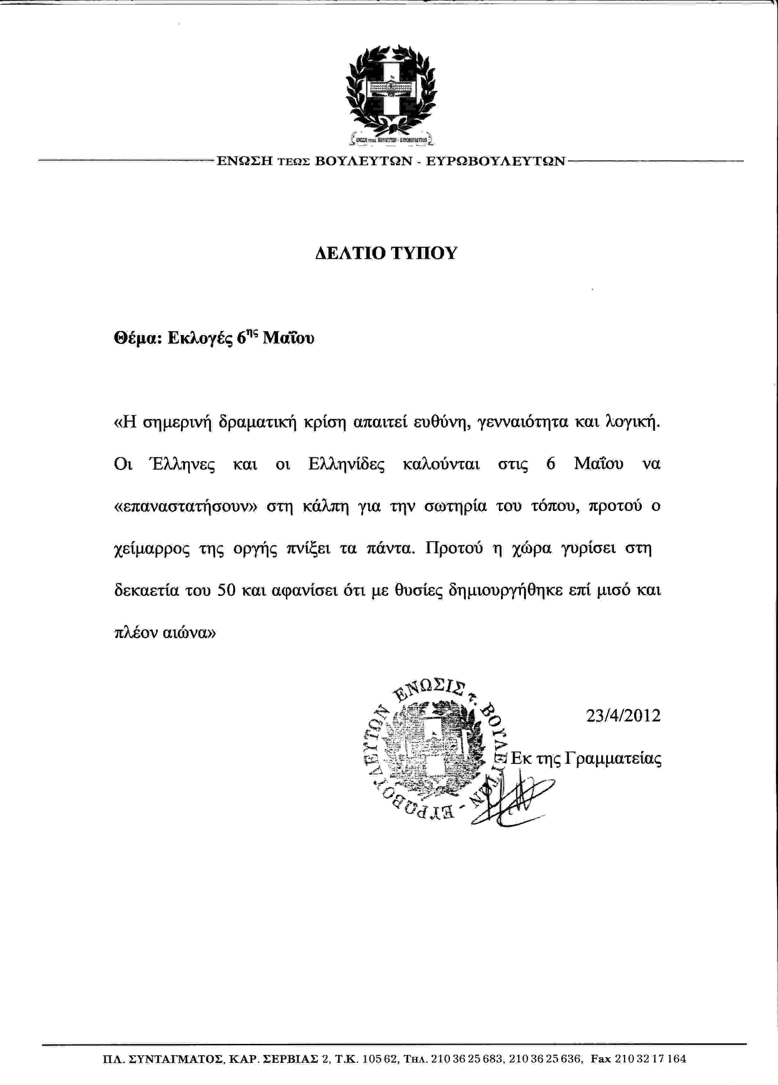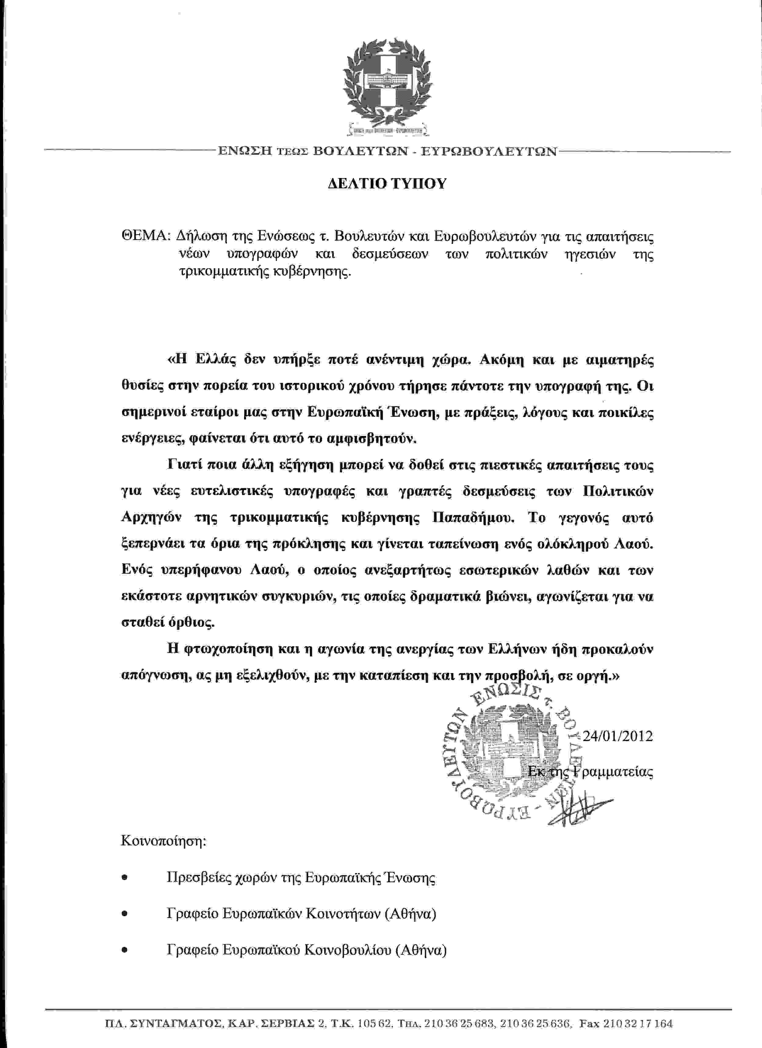 ASSOCIATION OF GREEK FORMER MEMBERS OF THE HELLENIC AND EUROPEAN PARLIAMENT |